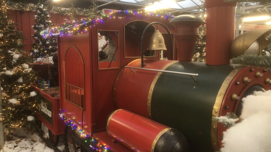 Buiten langs de weg sieren twee grote verlichte herten, bij de ingang staan twee metershoge kerstmannen. Het parkeerterrein staat vol met auto’s, een oude man hijst zijn vrouw vlak voor de deur uit de auto en heeft de rollator naast de auto voor haar gereed staan. Er is zo vlak voor de kerstdagen volop belangstelling voor de tuincentra, hier lijkt alles te halen…